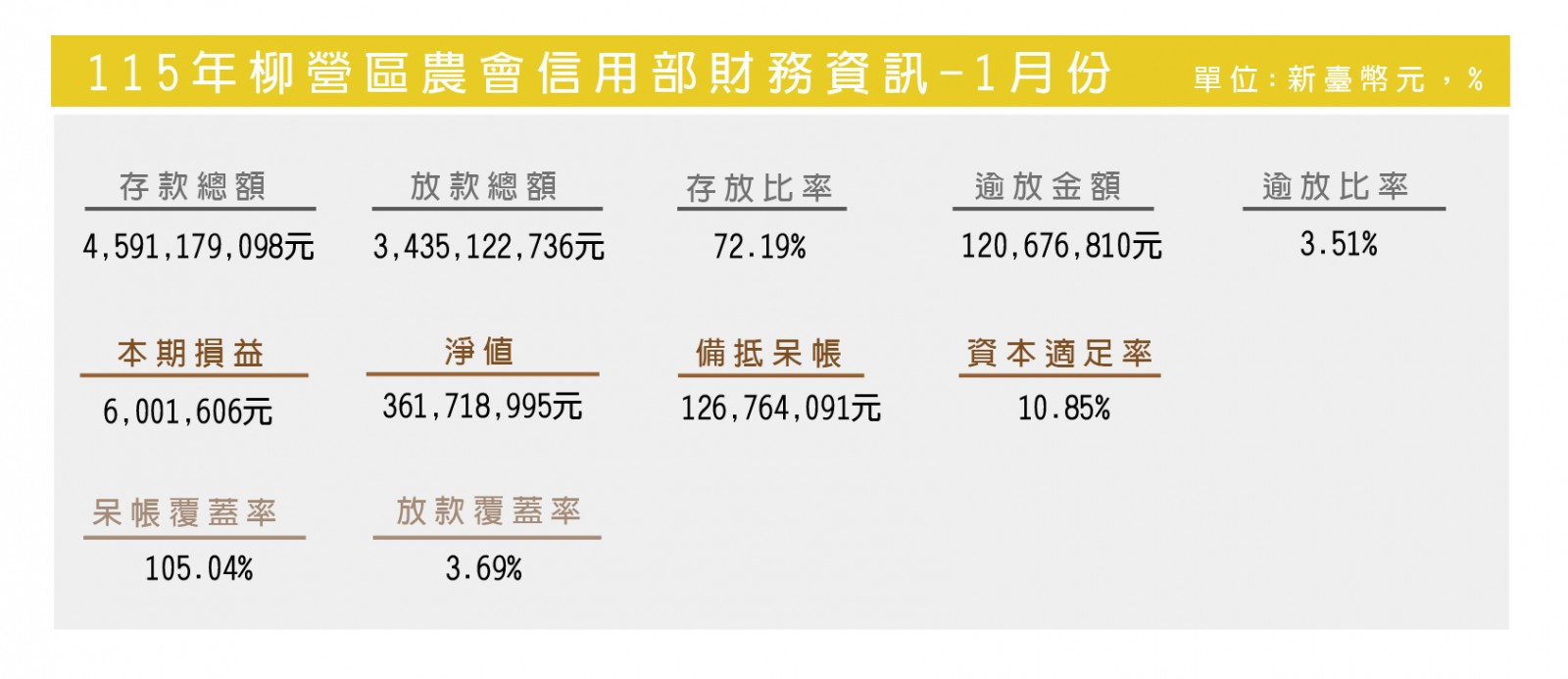 115年度-柳營區農會信用部財務資訊-1月份